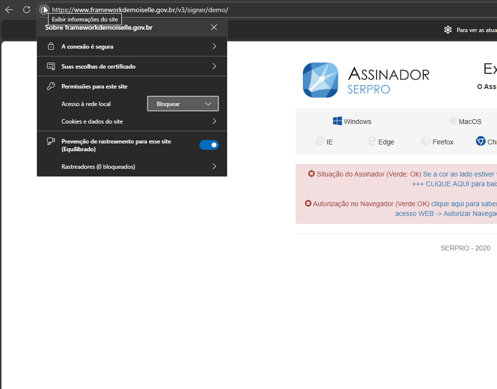 A partir das versões mais recentes dos navegadores será obrigatória a concessão de permissão de acesso à rede local para que sites e aplicações integrem-se corretamente com o Assinador Serpro, garantindo comunicação segura e funcionalidade plena em processos como assinaturas digitais; sem essa autorização, integrações podem falhar.